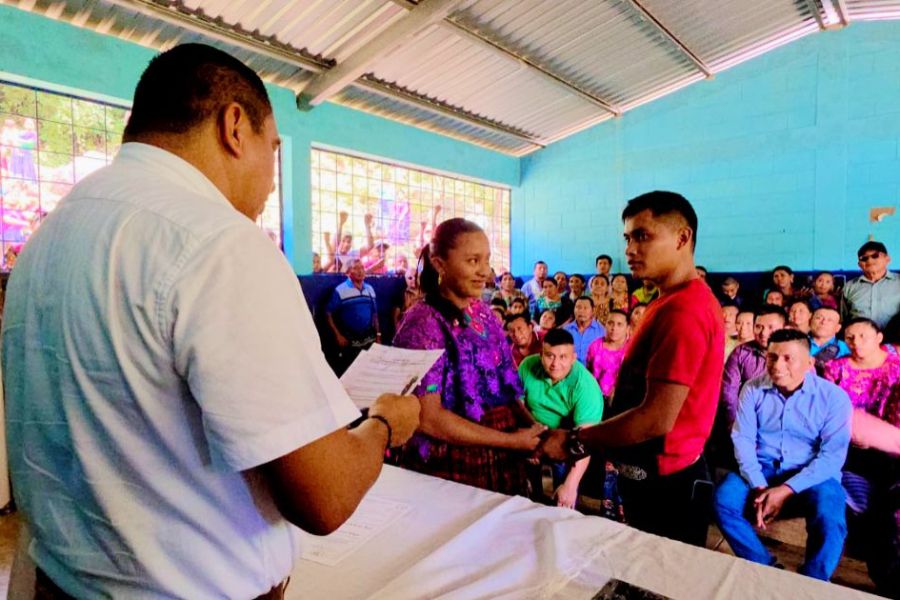 Seis parejas celebran su unión en boda civil realizada en Aldea San Juan Pacayal