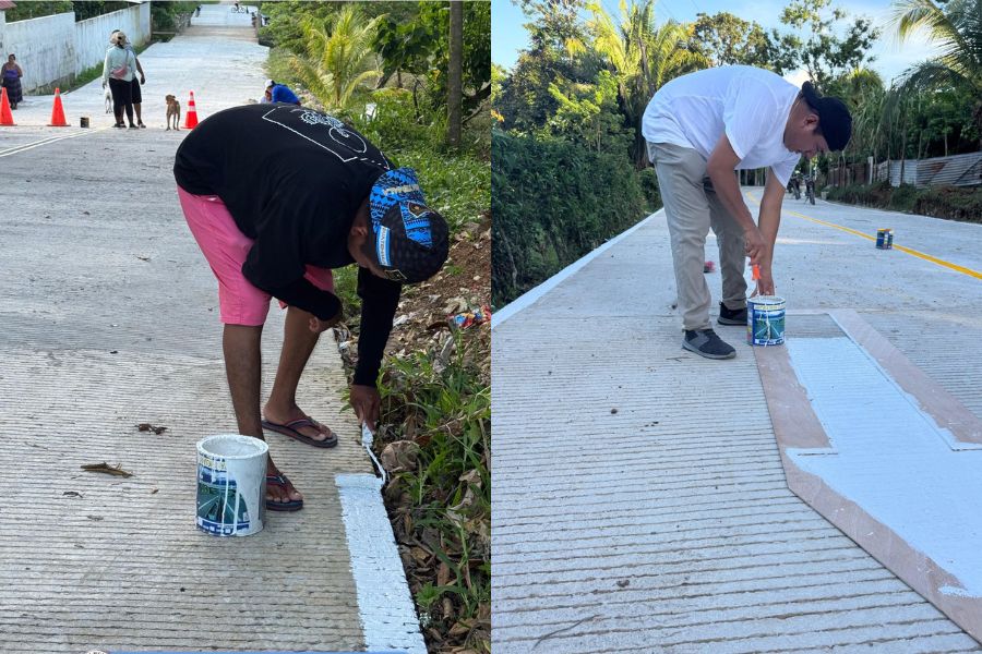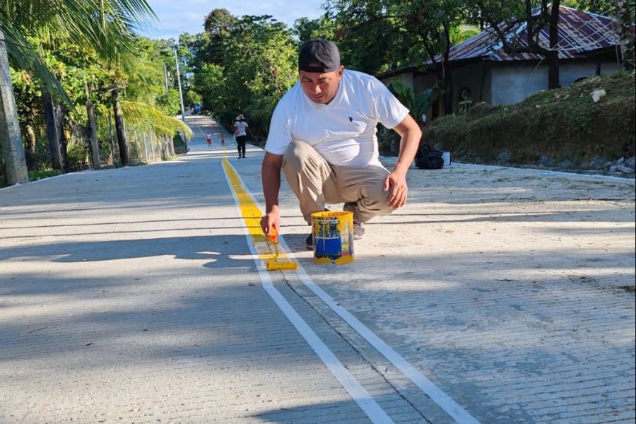 PMT de Livingston realiza señalización vial en la nueva calle pavimentada entre Creek Chino y La Esperanza